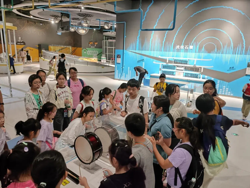 在“声光电”区域,讲解员为学生细致讲解展项中蕴含的原理,加快中学物理知识渗透;在机器人展区,同学们被灵活智能的机器人表演所吸引,目不转睛地观看机器人完成画画、弹奏等动作。